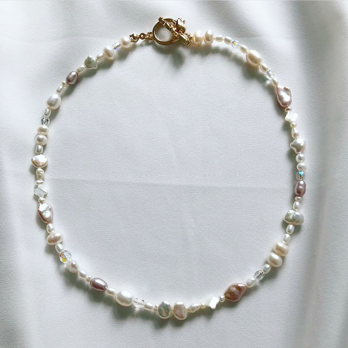 淡水パールに天然石やビーズを合わせた、世界に一つの特別なネックレスです。