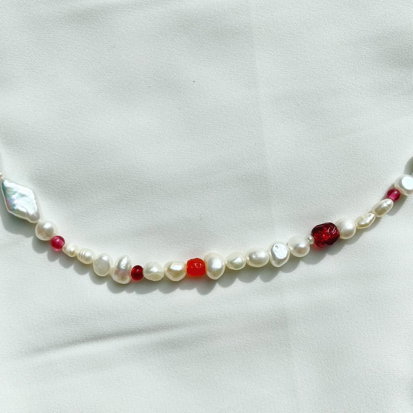 淡水パールに天然石やビーズを合わせた、世界に一つの特別なネックレスです。