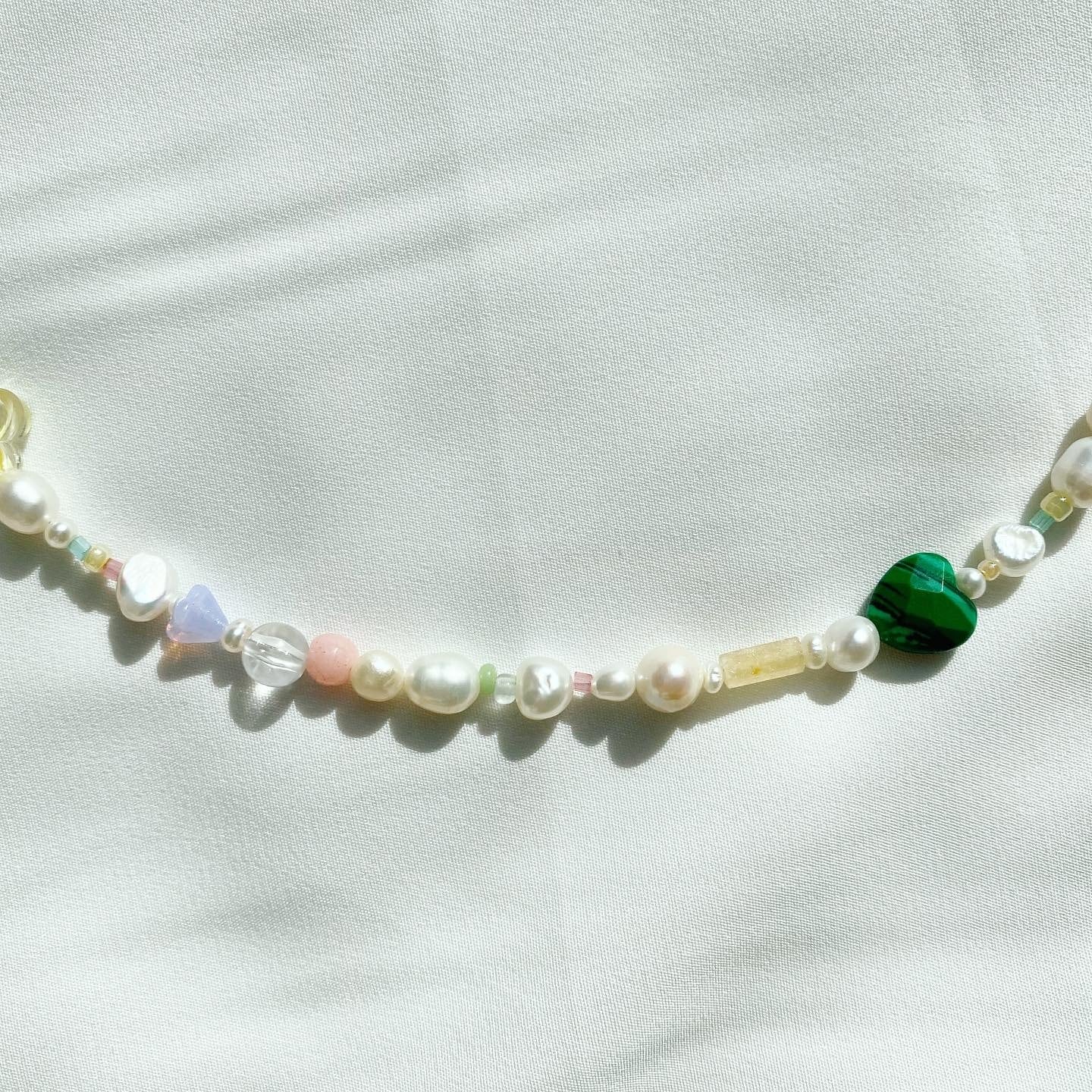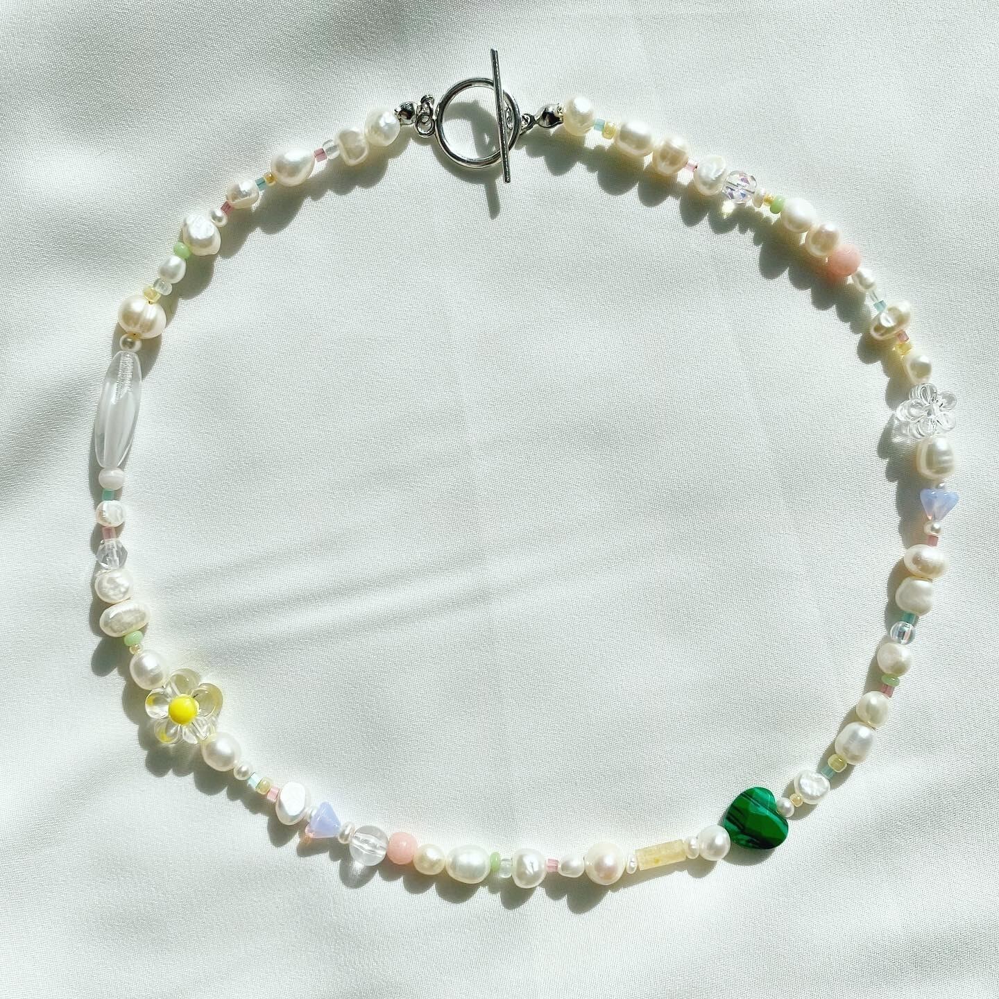 淡水パールに天然石やビーズを合わせた、世界に一つの特別なネックレスです。