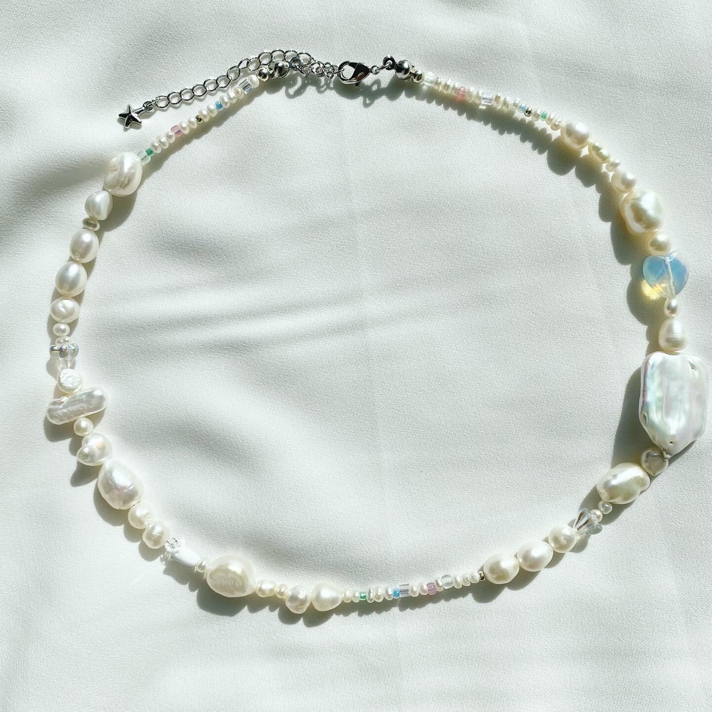 淡水パールに天然石やビーズを合わせた、世界に一つの特別なネックレスです。