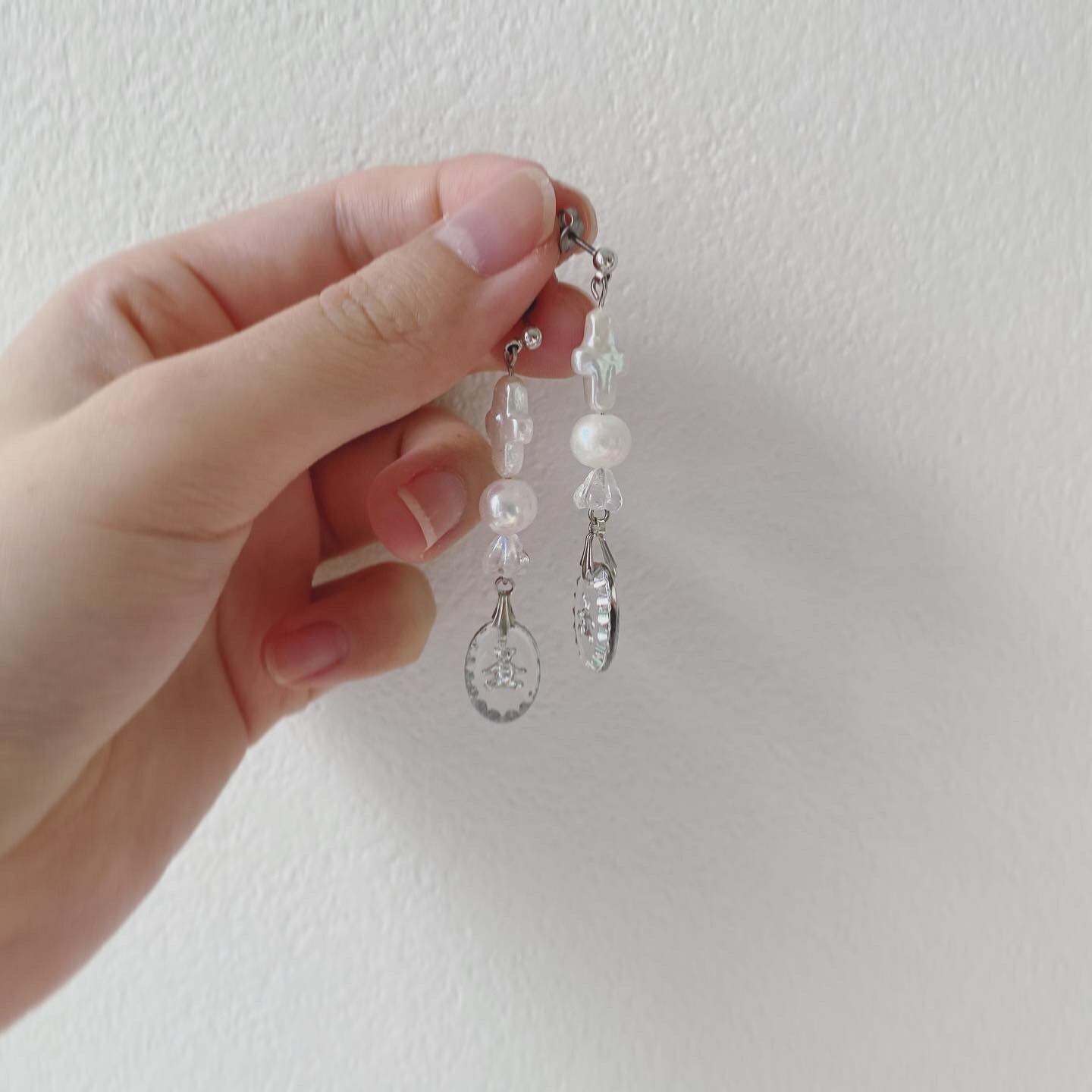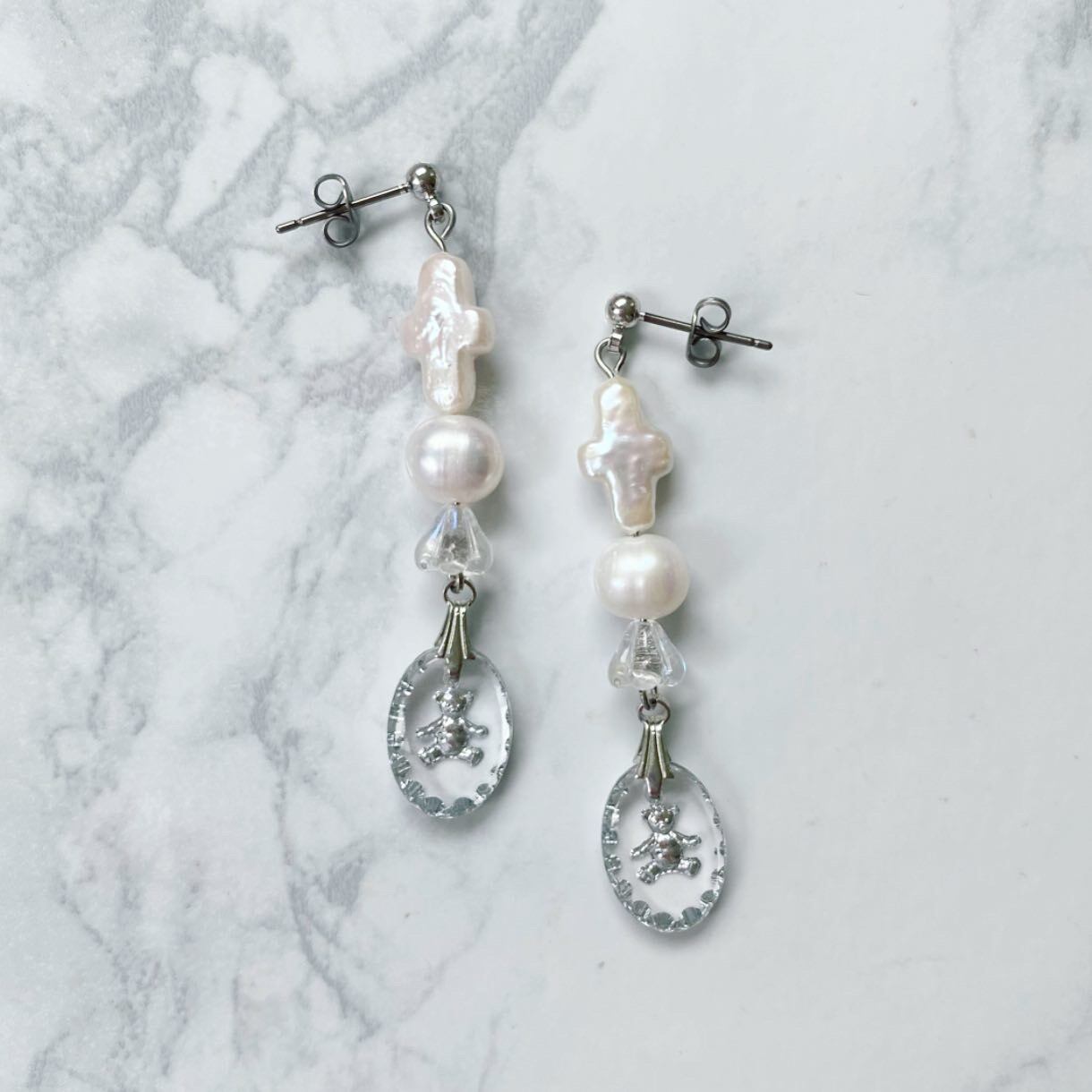淡水パールに可愛らしいクマの刻印のインタリオを組み合わせたピアスです。
