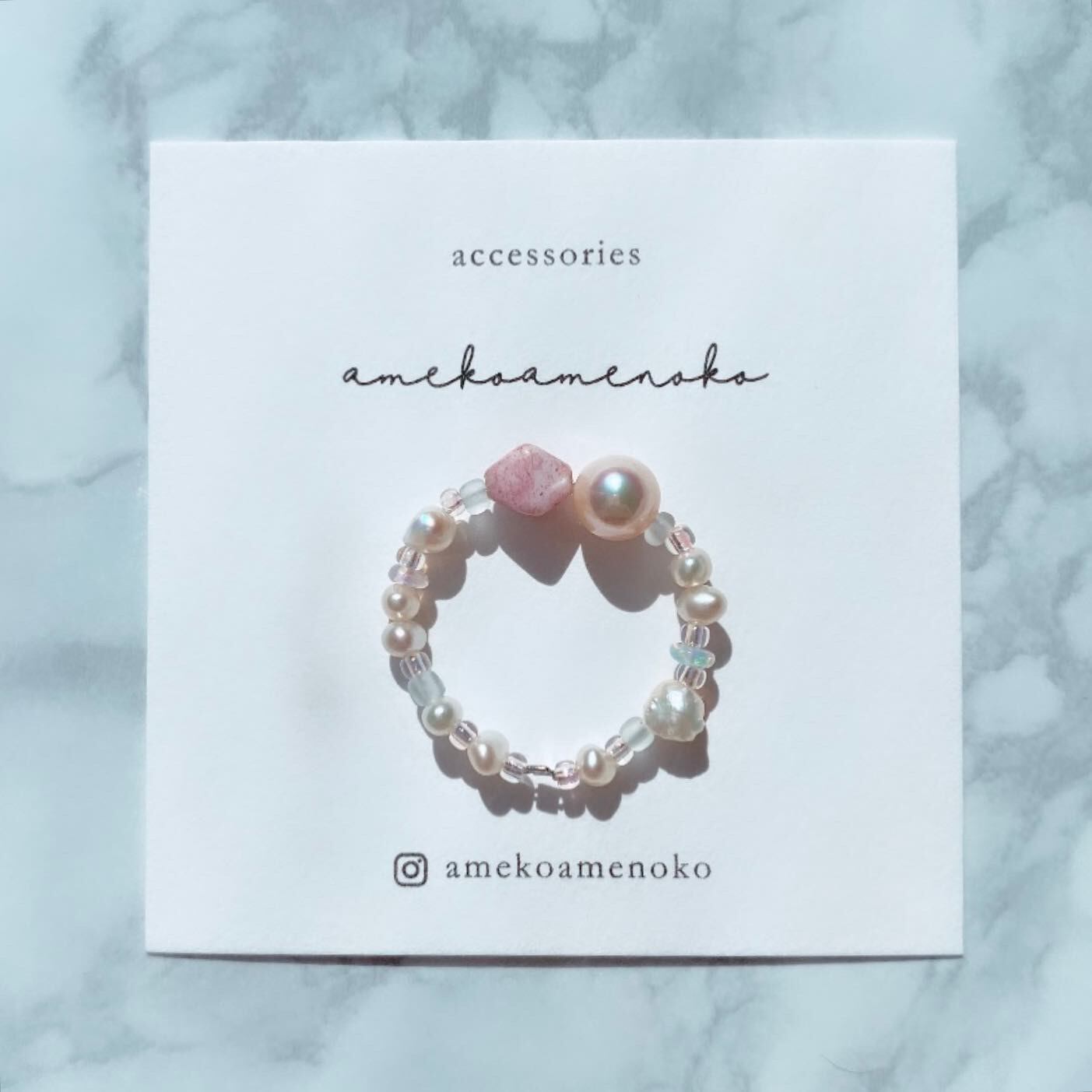 ヴィンテージビーズやチェコガラス、天然石などを使用し作ったビーズリングです。